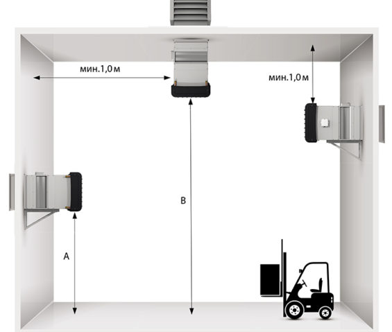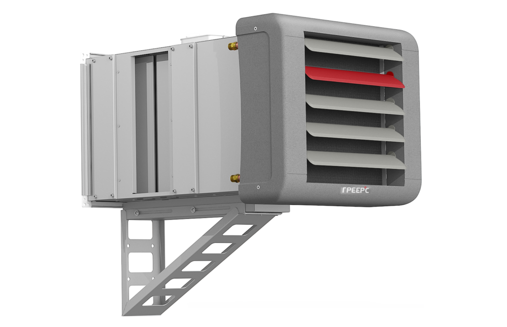 ГРЕЕРС КС с водяными тепловентиляторами ГРЕЕРС ВС можно установить под потолком с помощью монтажных шпилек.Защита от разморозки
