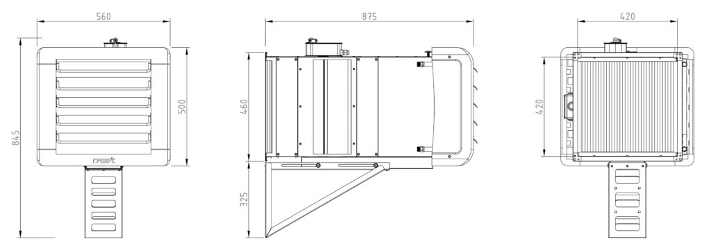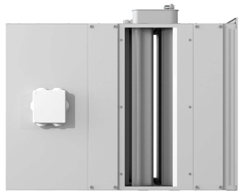 В камерах смешения установлен фильтр класса EU-3, который очищает как свежий воздух с улицы, так и рециркуляционный воздух в помещении. По запросу устанавливается фильтр другого класса.Компактность