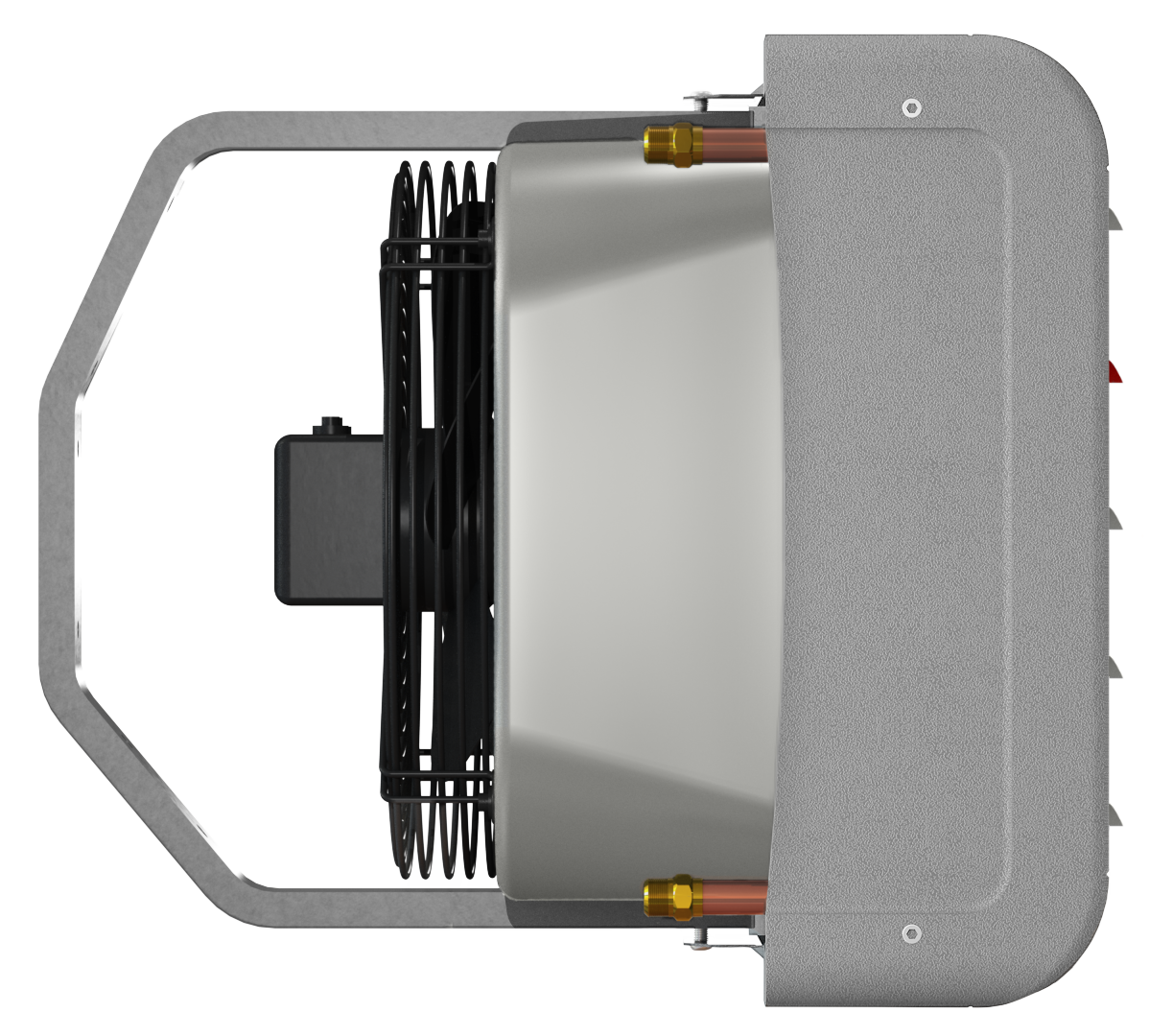 Медно-алюминиевый теплообменник с медными патрубками позволяет быстро и эффективно обогревать помещения любого объема.Легкий монтаж